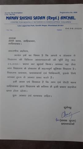 Rotary Club of Sahibabad paid a visit to MANAV SHISHU SADAN where. . .